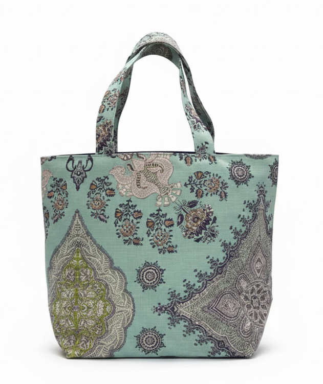 Totes are hand cut and sewn in the USA and are made from Belgian Linen / Cotton handprinted in the USA. Fabric has been backed so the tote will retain its shape.